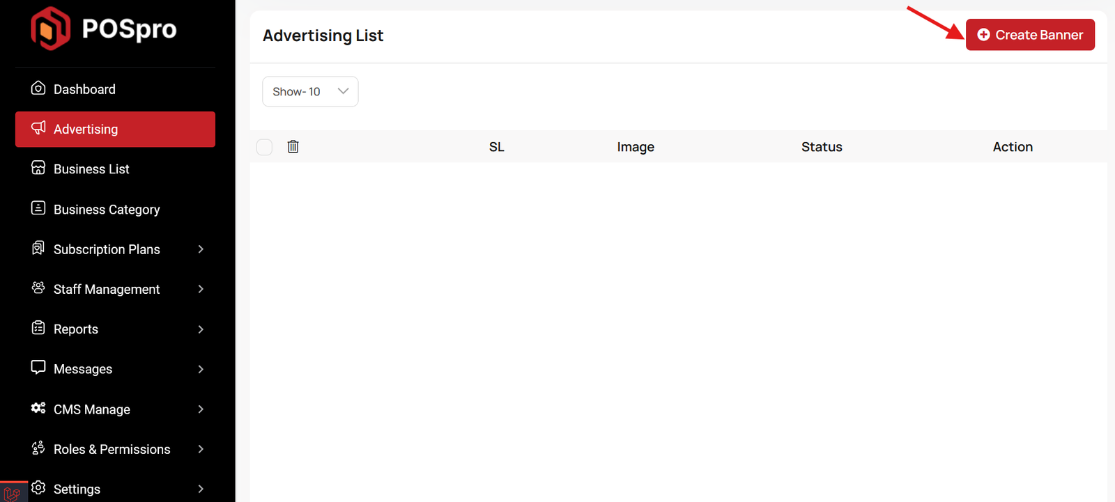 This list allows you to see the current advertising campaigns with status. To create a new advertise, you can click on the "Create Banner" button at the top right of the screenshot. A pop-up window will open, where you can add an image and change the status.