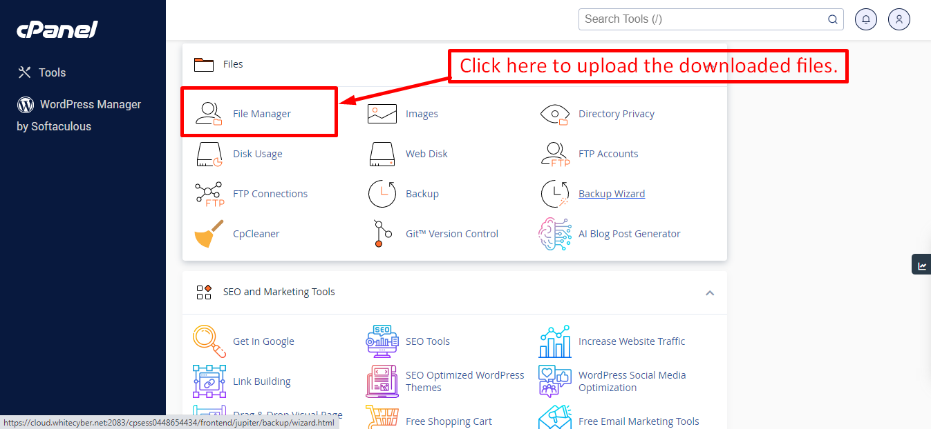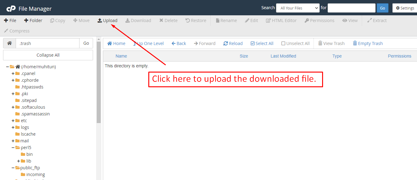 After that in the public_html directory upload the downloaded file.
