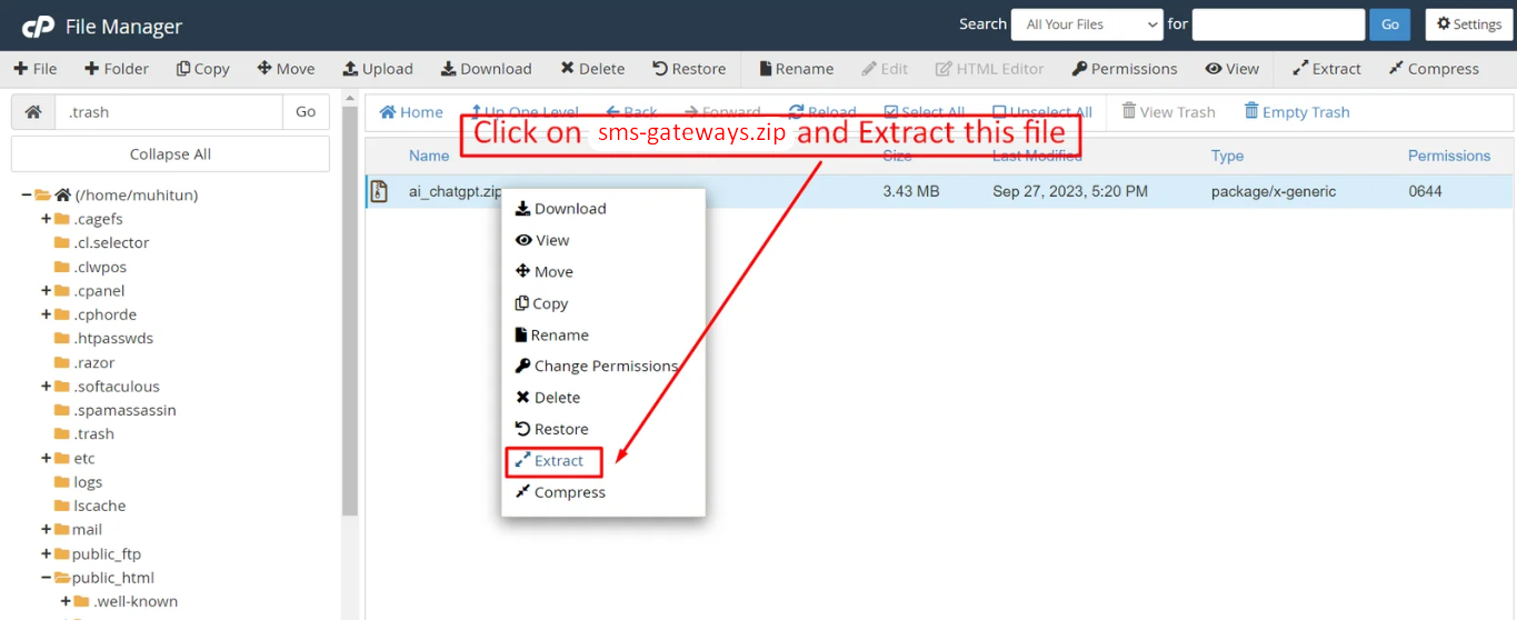 After creating a database, Upload the Super-Admin.zip file on the web root folder of your domain. This folder is generally called public_html, html, or example.com, but depending on your server's configuration, it might be named differently.